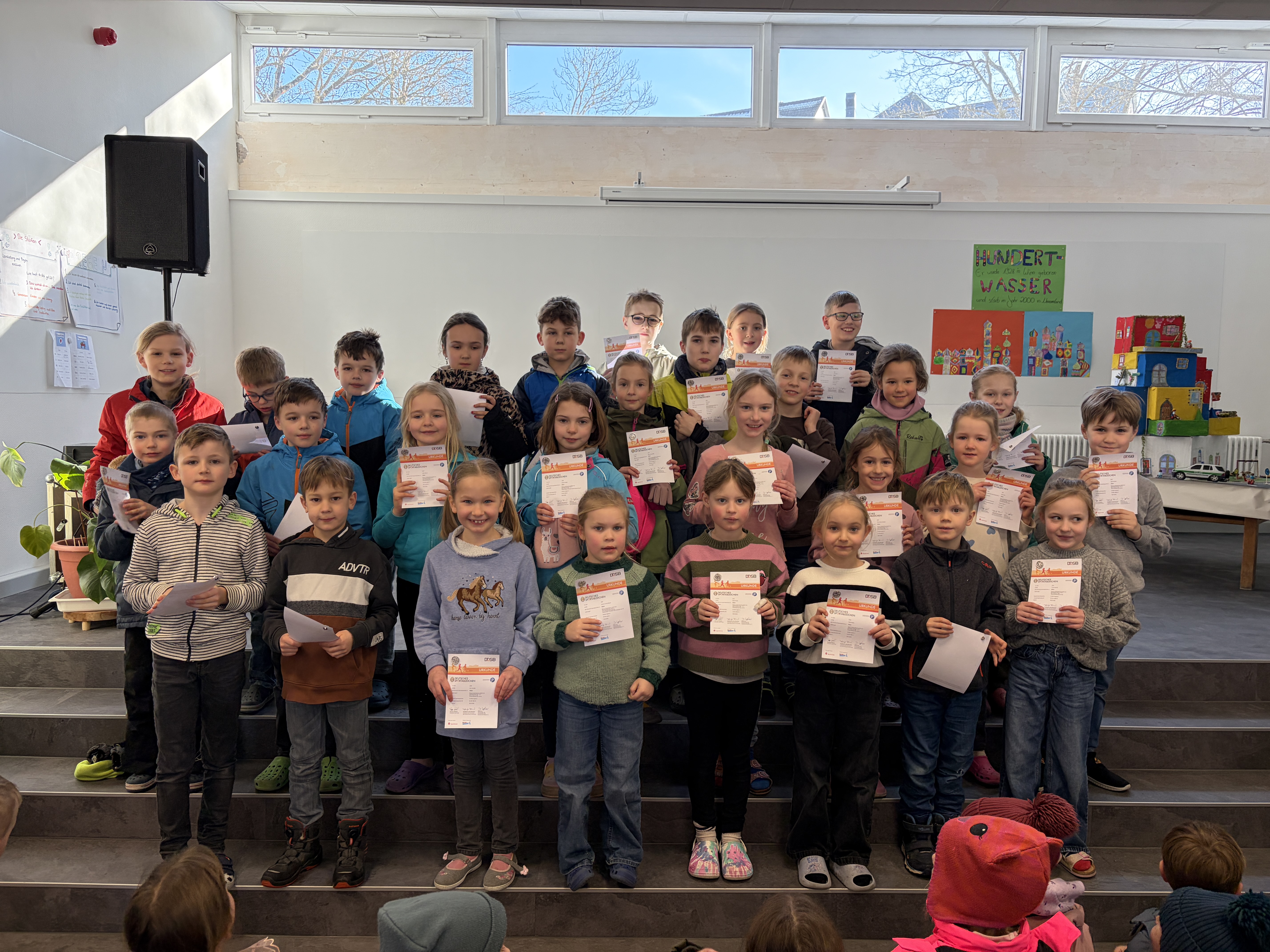 Die Waldspiele waren nicht nur ein besonderes Naturerlebnis, sondern auch ein Tag, der den Zusammenhalt zwischen den verschiedenen Klassen förderte und das Bewusstsein der Schüler für den Umweltschutz schärfte. Die Organisation durch die Drittklässler zeigte, wie gut die Zusammenarbeit über Klassenstufen hinweg funktionieren kann, während die Baumpflanzaktion und die Rollende Waldschule den Schülerinnen und Schülern wertvolle Einblicke in die Natur und deren Bedeutung vermittelten. Die Kletteraktion der Viertklässler rundete den ereignisreichen Tag ab und wird den Kindern sicherlich noch lange in Erinnerung bleiben.